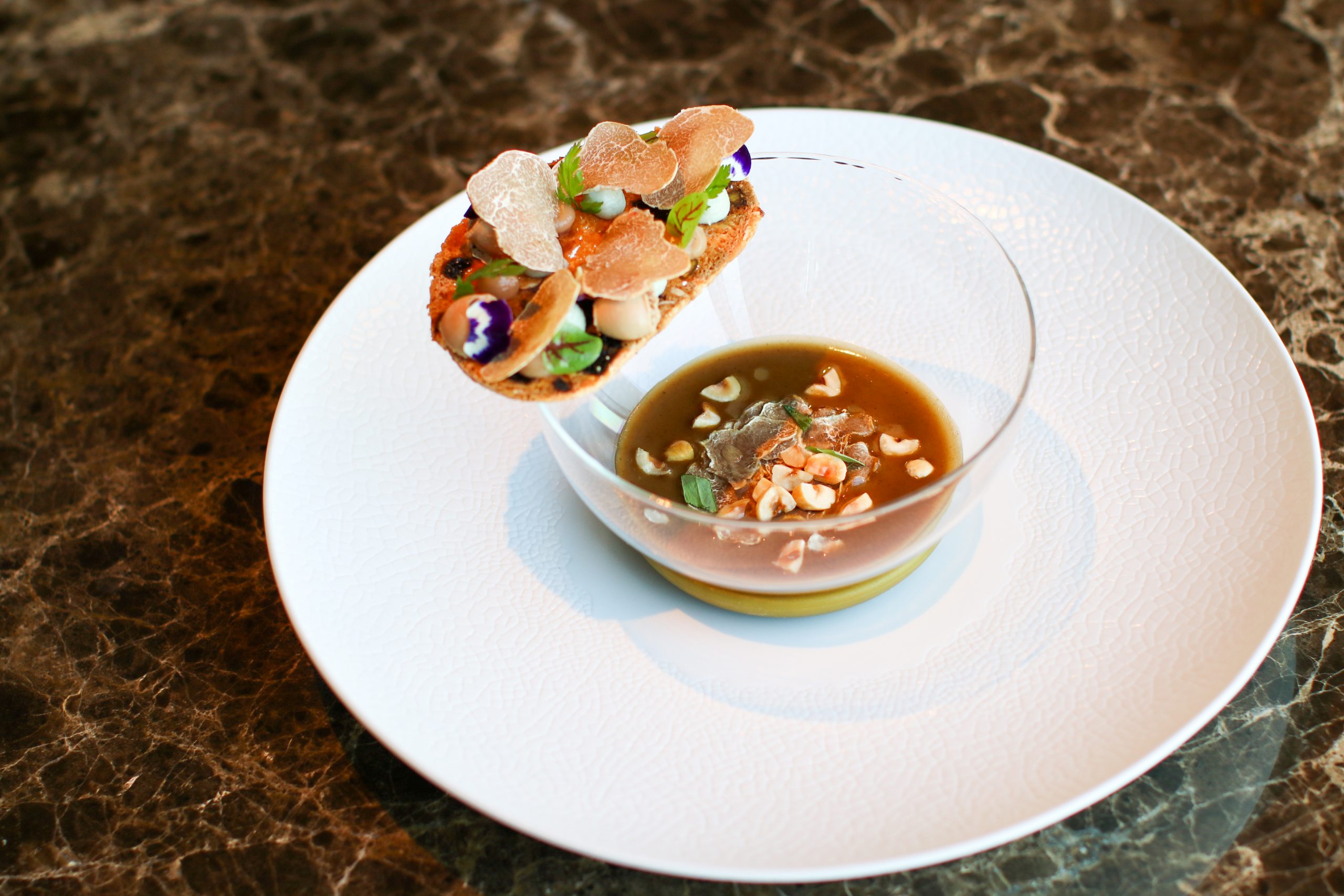 His explorations nourished his memory as a cook. He finally settled his suitcases in China, in Beijing precisely. After four years of a first successful experience as a chef in charge, he continuedhis quest for excellence in Macao. In 2012, attracted by the cosmopolitan energy of this old trading post city, he took over the old restaurant at The Crown hotel, renamed Tasting Room. Barely installed for six months, the Michelin Guide already rewarded his creative impulses with a first star in 2013, then a second star in2016. In his frantic race to always do better, he decided the following year to leave everything to go live in Hong Kong and take over the kitchens of Caprice in 2017, the gourmet restaurant at the Four Seasons hotel. In less than two years, he reached the supreme distinction, the third star.
