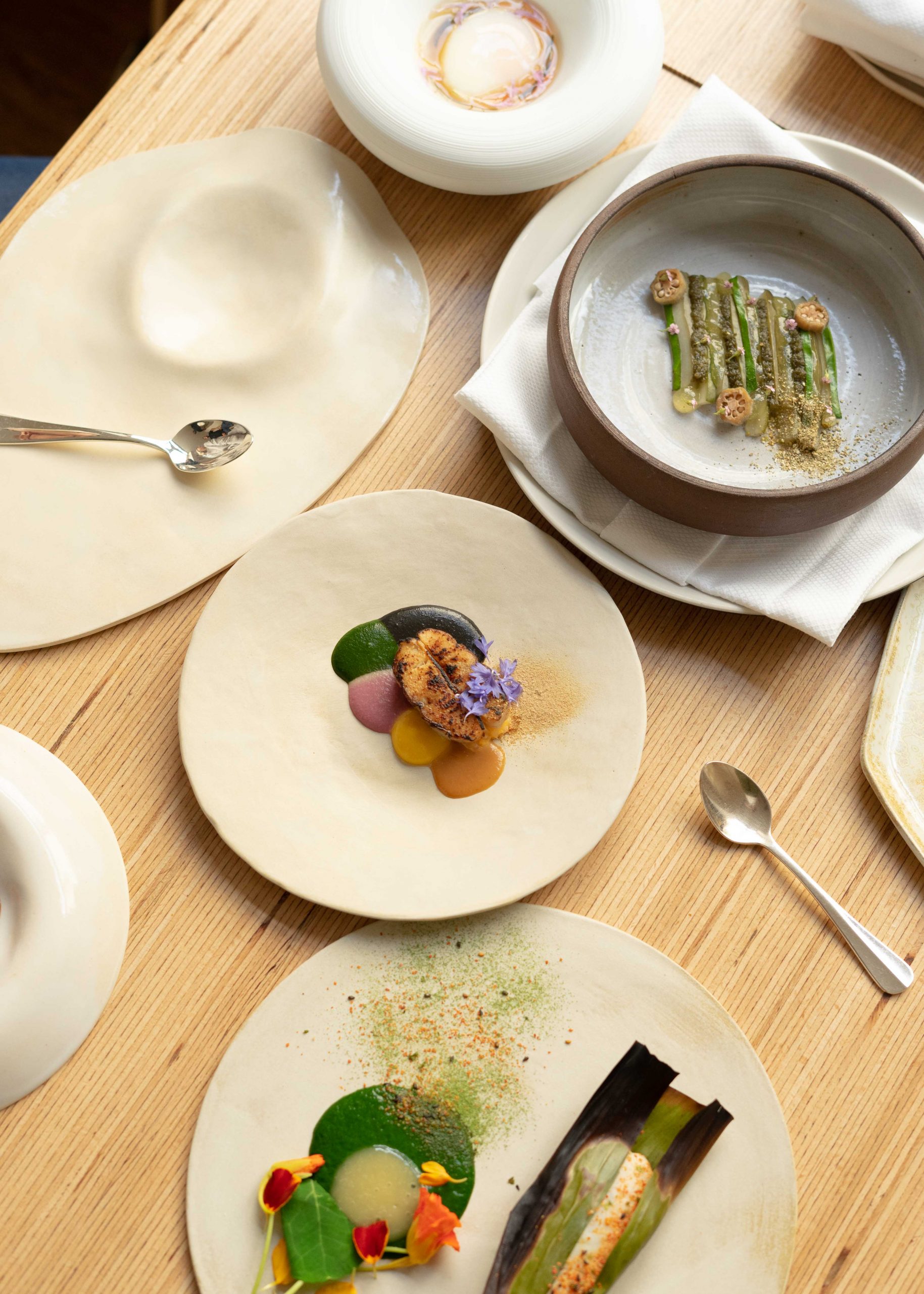 His epiphany comes in 2012 with Chef Hans Zahner at the Royal Monceau. At 19, he immerses himself in his mentor’s finesse, watches him, and understands that a whole new world awaits him. From commis chef, he raises to demi-chef de partie before leaving for a few months at the Shangri-La in 2015, and moving on to the Mandarin Oriental the same year. He stays there for 4 years, evolving from demi-chef de partie to sous-chef under the guidance of Chef Thierry Marx. He explores Japan further with the two-Michelin-starred Chef, through the discovery of delicate and perfect techniques and niche products that naturally lead him to fine-tune his project.